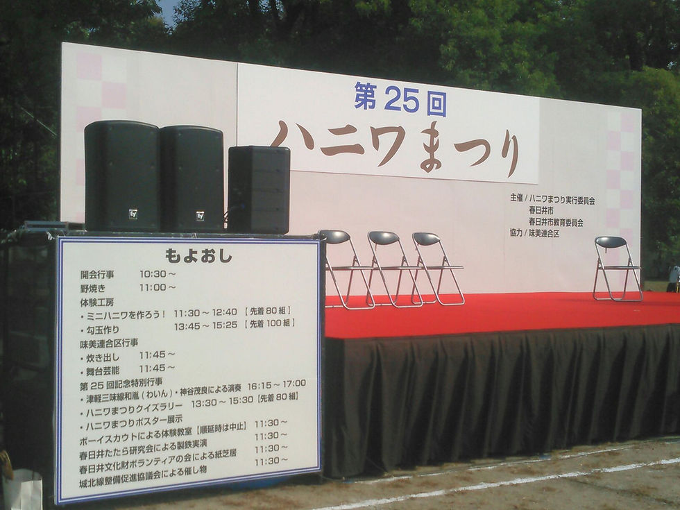 春日井市ハニワまつりhakusanjinja2015年10月24日読了時間: 1分本日は当宮隣接の二子山公園で春日井市ハニワまつりが開催されます。 準備中のところを少し覗かせて頂きました。 10:30開会で、味美連合区による行事では巫女さんの舞の奉納もあり、ハニワの野焼きやボーイスカウトの体験教室、ミニハニワや勾玉の体験工房などもございます。 炊き出しや露店もございますので、是非お立ち寄りください。